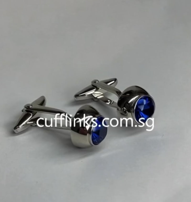 One Round Bejewelled Crystal Cufflinks in Blue