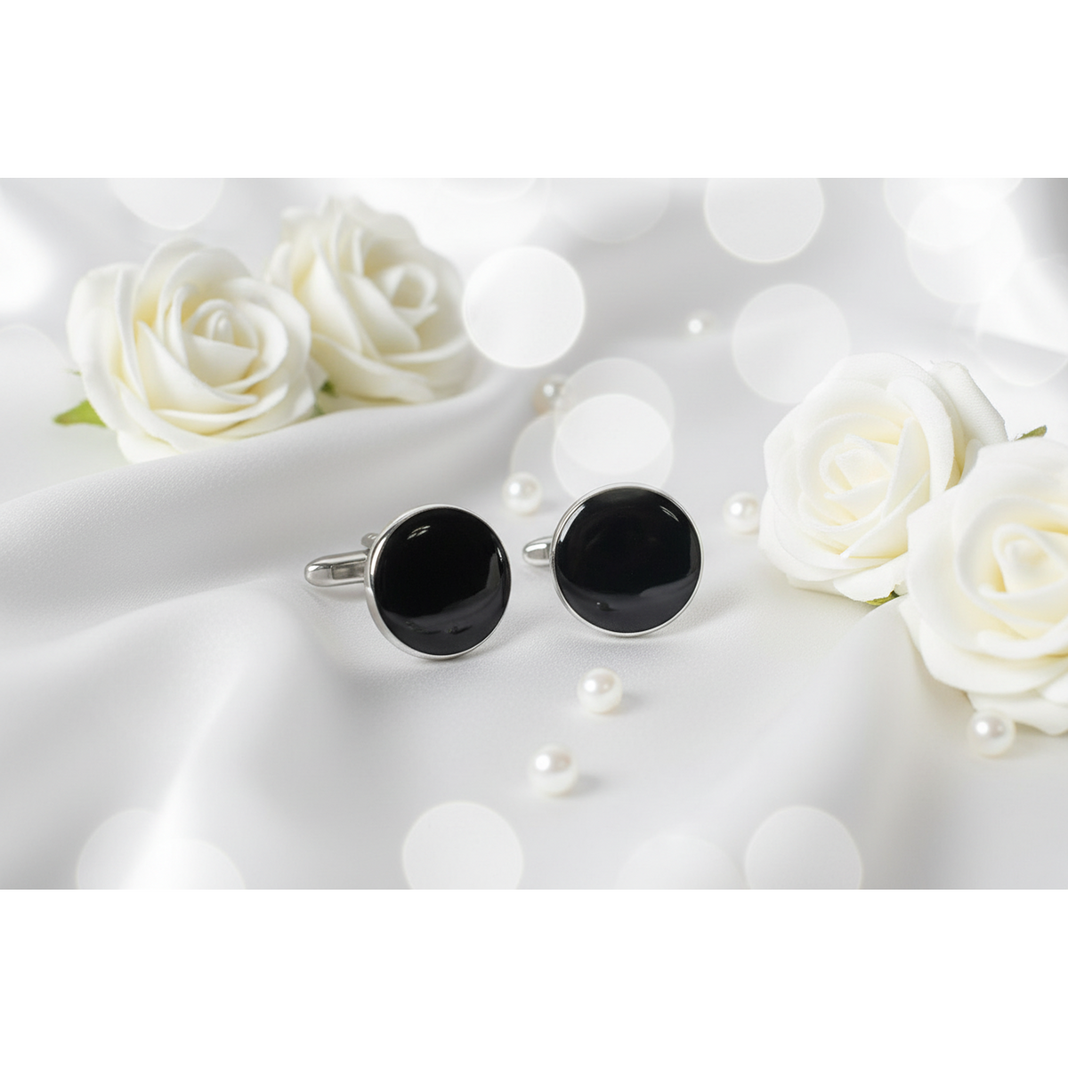 marzthomson The Noir Series — Men’s Premium Black Enamel & Silver Cufflink Collection