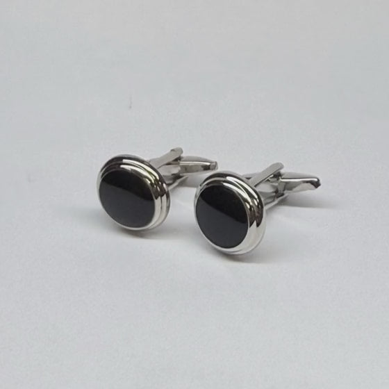 MarZthomson Silver Round domeCufflinks with Black Enamel (Small)