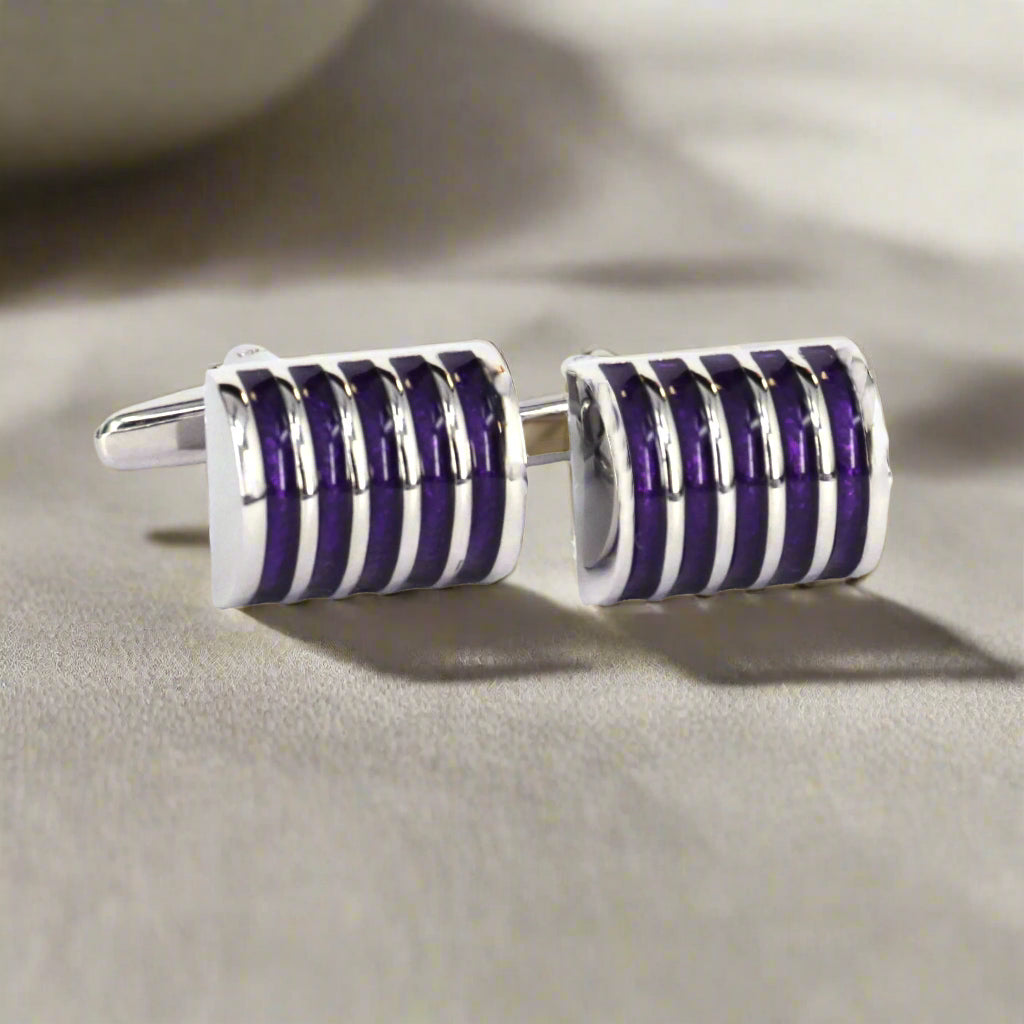 Rectangle Purple Enamel with Blue and silver Stripe Grill Cufflinks (Online Exclusive)