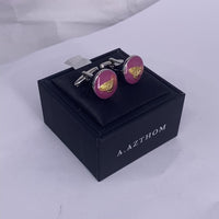 这种袖扣设计有四种不同的颜色:深蓝色、红色、绿色和紫色,镀铑或镀金。
